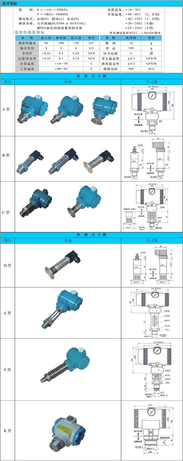 wp435型無腔壓力變送器選用進(jìn)Kou高精度、高穩(wěn)定性防的芯片組裝,采用激光焊接工藝將芯片與不銹鋼外殼焊接在一起,無壓力腔體,適用于各種易堵塞、要求保持衛(wèi)生、便于清洗或無菌環(huán)境的壓力測(cè)量和控制。該產(chǎn)品具有較高的工作頻率,適于動(dòng)態(tài)測(cè)量。